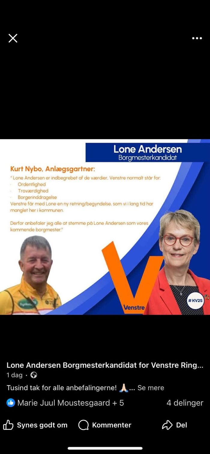 Seneste opslag fra facebooksiden Venstre i Ringkøbing-Skjern Kommune:
